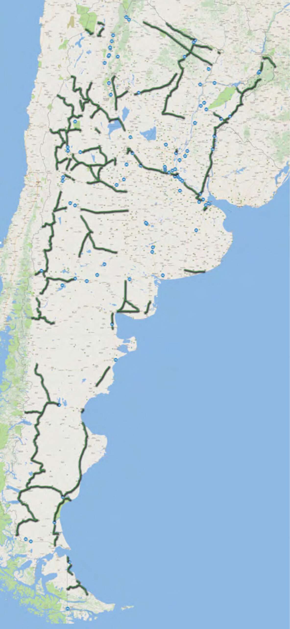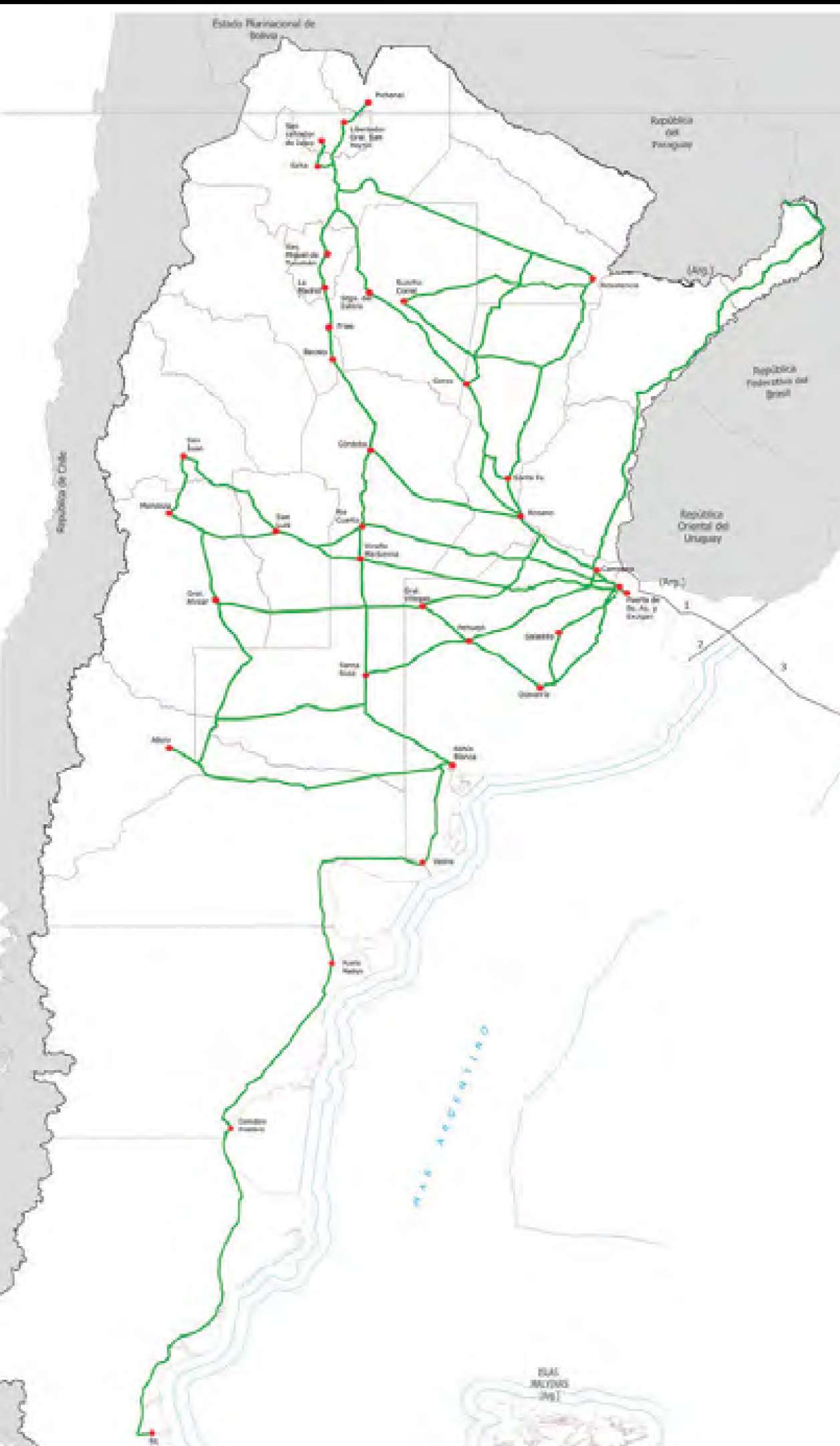 Este mapa de Argentina está tomado de la propia publicación oficial en https://www.argentina.gob.ar/sites/default/files/anexo_mapas_recorrido_bitrenes_0.pdf que invitamos a visitar a fin de ver en detalle lo habilitado para circular. Ya visualmente se observa la Argentina invertebrada.
