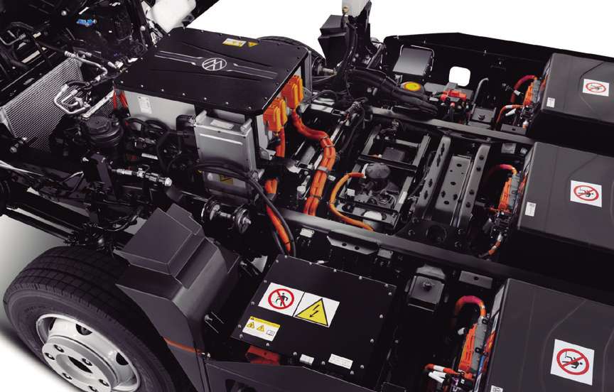 El modelo al cual referimos es un Volkswagen e-Delivery 14 toneladas 6×2, con un motor eléctrico que entrega 300 kW con un torque máximo de 2.150 Nm desde rotación cero.