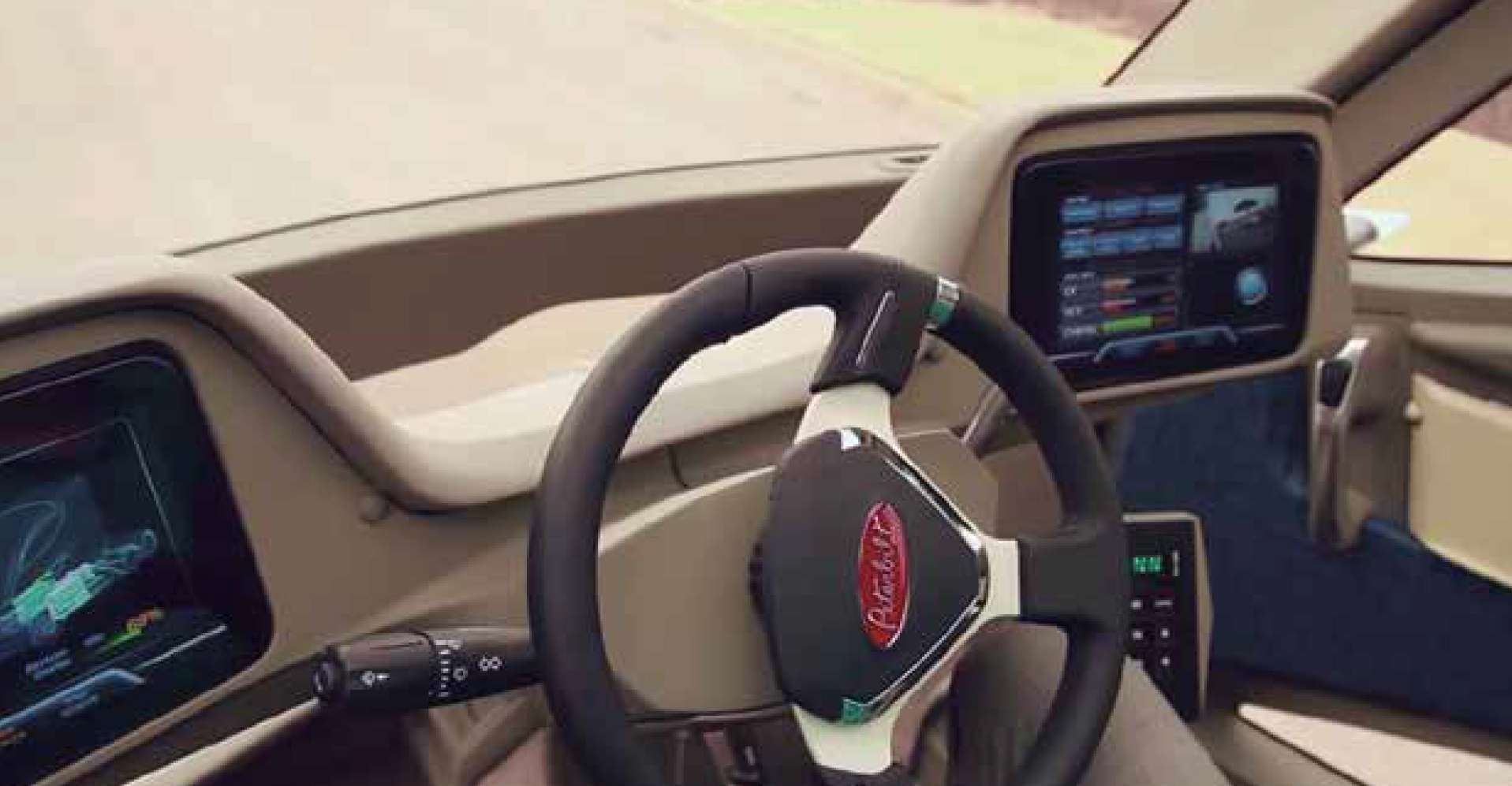 La cabina es el corazón visual del proyecto. Con el conductor sentado en posición central, la ergonomía recuerda a los superdeportivos y ofrece una visión panorámica inédita para la logística pesada. Su silueta curva, sin aristas pronunciadas, reduce la resistencia al viento y da al conjunto una apariencia fluida, casi orgánica. Las ruedas carenadas, los laterales suavizados y la cola estilizada del remolque completan un conjunto pensado para que el aire sea aliado, no enemigo.