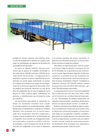 obsoletas. Esta renovación sería un fuerte motori- de fabricación nacional de Acoplados y Semirremol-