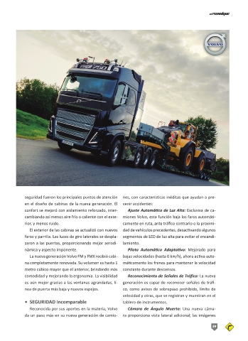 La nueva generación Volvo FM y FMX recibió cabi- bajas velocidades (hasta 0 km/h), ahora activa auto-