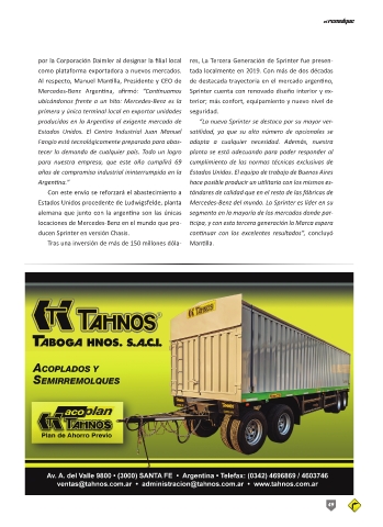 producidas en la Argentina al exigente mercado de “La nueva Sprinter se destaca por su mayor ver-
