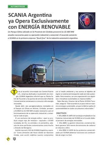 gía, SCANIA Argentina informó que su Planta fa- table. Para nosotros, ser una organización con objeti-