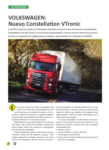 Camiones y Buses de VW Argentina, expresó: “Volk- • Tecnología de emisiones SCR